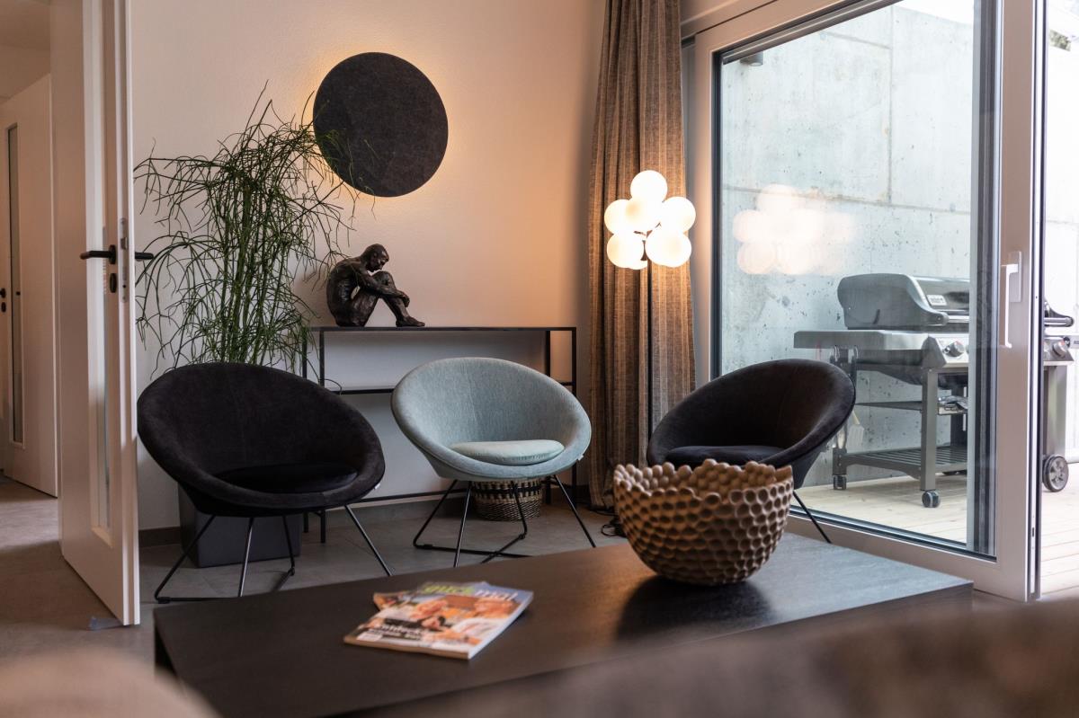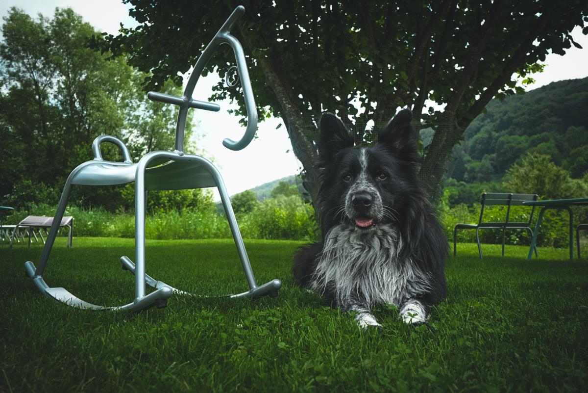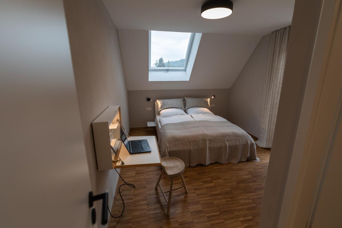 Mit großen Buchstaben auf der Betonmauer werden Sie empfangen - renkenmühle. Zur Eingangsseite gibt sich das Haus verschlossen, öffnet sich aber auf der Flussseite mit großen Fensterfronten zum Garten. Die renkenmühle ist ein naturverbundener Rückzugsort für die große Familie, Freunden, Seminare oder Gruppen, die Wert auf den Luxus eines Hotels legen, aber eine persönlichere und intimere Atmosphäre bevorzugen. Schön, um sich mit Familien oder Freunden für einige Zeit von der Welt zurückzuziehen.