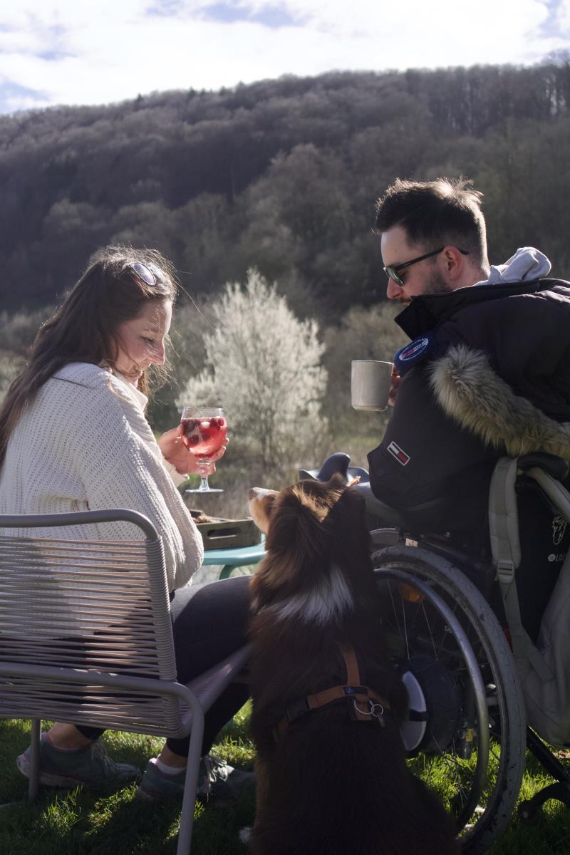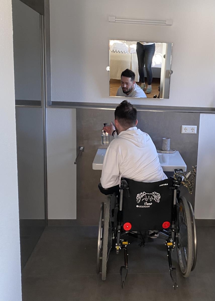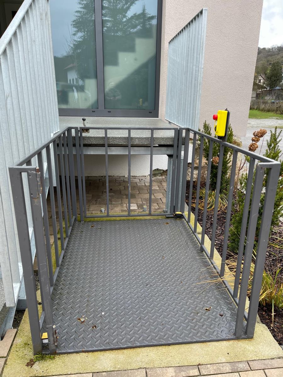 Barrierefreies Erdgeschoss Das Erdgeschoss der renkenmühle ist barrierefrei ohne Stufen. Sie hat ein Schlafzimmer mit Seniorenbett, einen barrierefreien Schrank und ein geräumiges barrierefreies Duschbad mit Haltegriffen. Das Waschbecken ist unterfahrbar. Alle Türen haben hier eine Breite von 95 cm. Die Haustür und Terrassentür sind stufenlos passierbar. Die Eingangstreppe kann mittels elektrischem Lift überwunden werden.