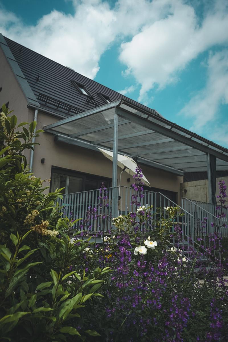 Im Außenbereich erwartet Sie ein Grundstück, das an der Längsseite von dem Fluss Jagst begrenzt wird. Der verwunschene Garten am Wasser lädt zum Träumen in der Hängematte oder Grillen ein. Sie haben verschiedene Garten-/Terrassenzimmer. Überall am Flussufer befinden sich Sitz- und Liegemöglichkeiten. Am Haus gibt es eine überdachte und eingezäunte Terrasse. Hier können sich auch kleine Kinder mal ohne Aufsicht aufhalten. Denn das Grundstück ist zwar zur Straße hin eingezäunt, aber zur Jagst hin offen.