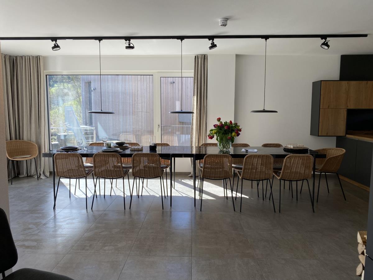 Erleben Sie ein weitläufiges Ferienhaus – die 7 Schlafzimmern mit Bad en Suite erzeugen eine hotelartige Stimmung. Dieses neu gebaute Ferienhaus verfügt über jeglichen Luxus, Wohnbereich mit Kaminofen, Galerie mit hochwertigem Kickertisch, große Panoramasauna mit Blick zum Fluss, in der großzügigen Küche mit Weinkühlschrank können Sie in der Gruppe die wunderbarsten Essen zubereiten oder zubereiten lassen, eingezäunter Garten, traumhafte, überdachte Außenterrasse von der Sie einen einmaligen Blick über den Fluss haben.