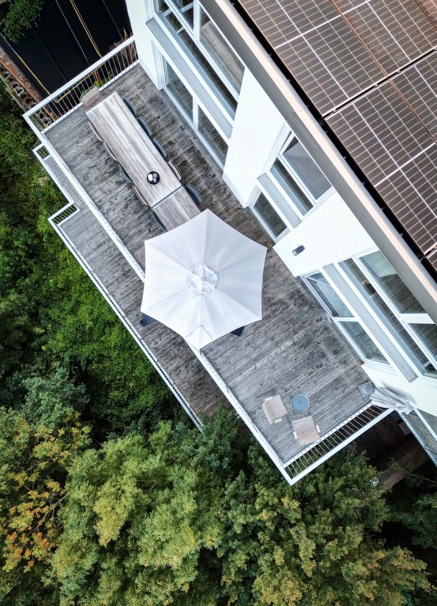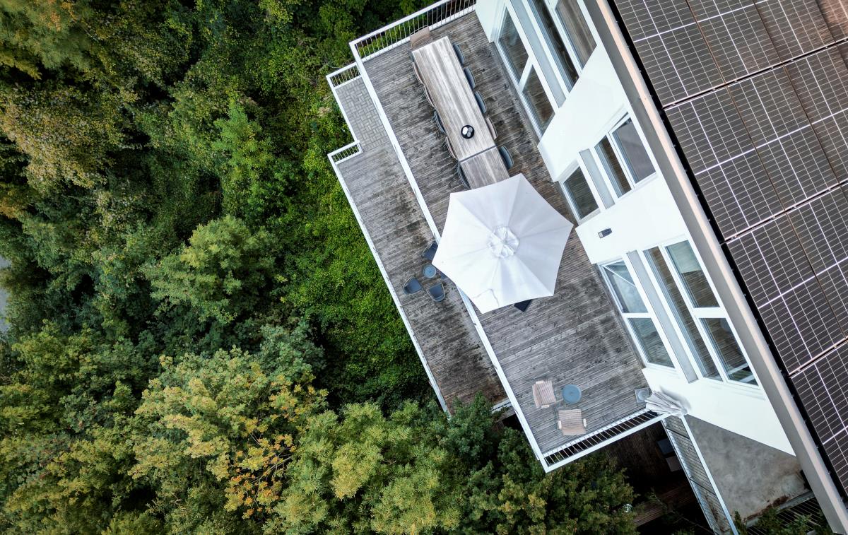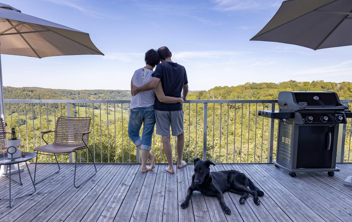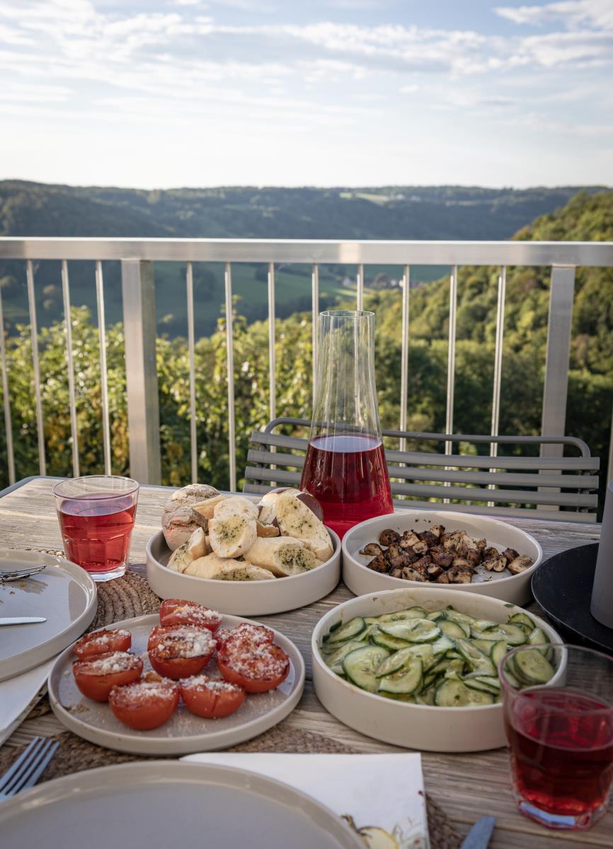 Hier finden bis zu 12 Personen (inklusive Kleinkinder und Babys) viel Platz für gemeinsame Zeit, Entspannung und Erlebnisse. Atemberaubende Terrassen schweben über den Baumwipfeln des Jagsttals – perfekt, um den Blick schweifen zu lassen oder unvergessliche Sonnenuntergänge zu genießen.