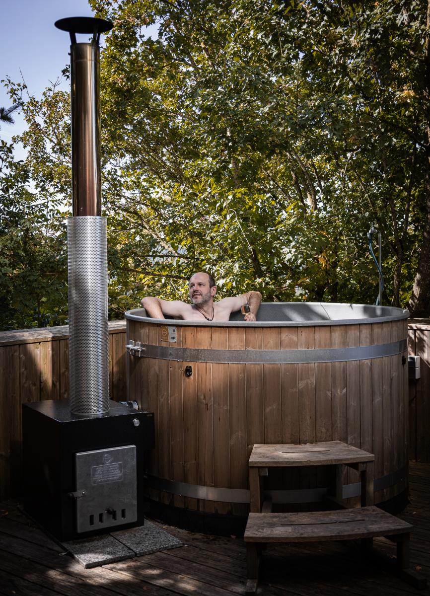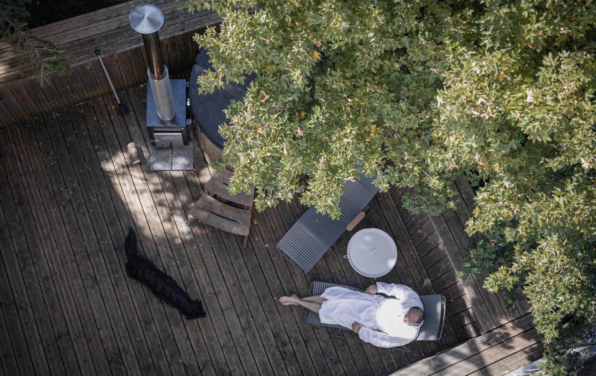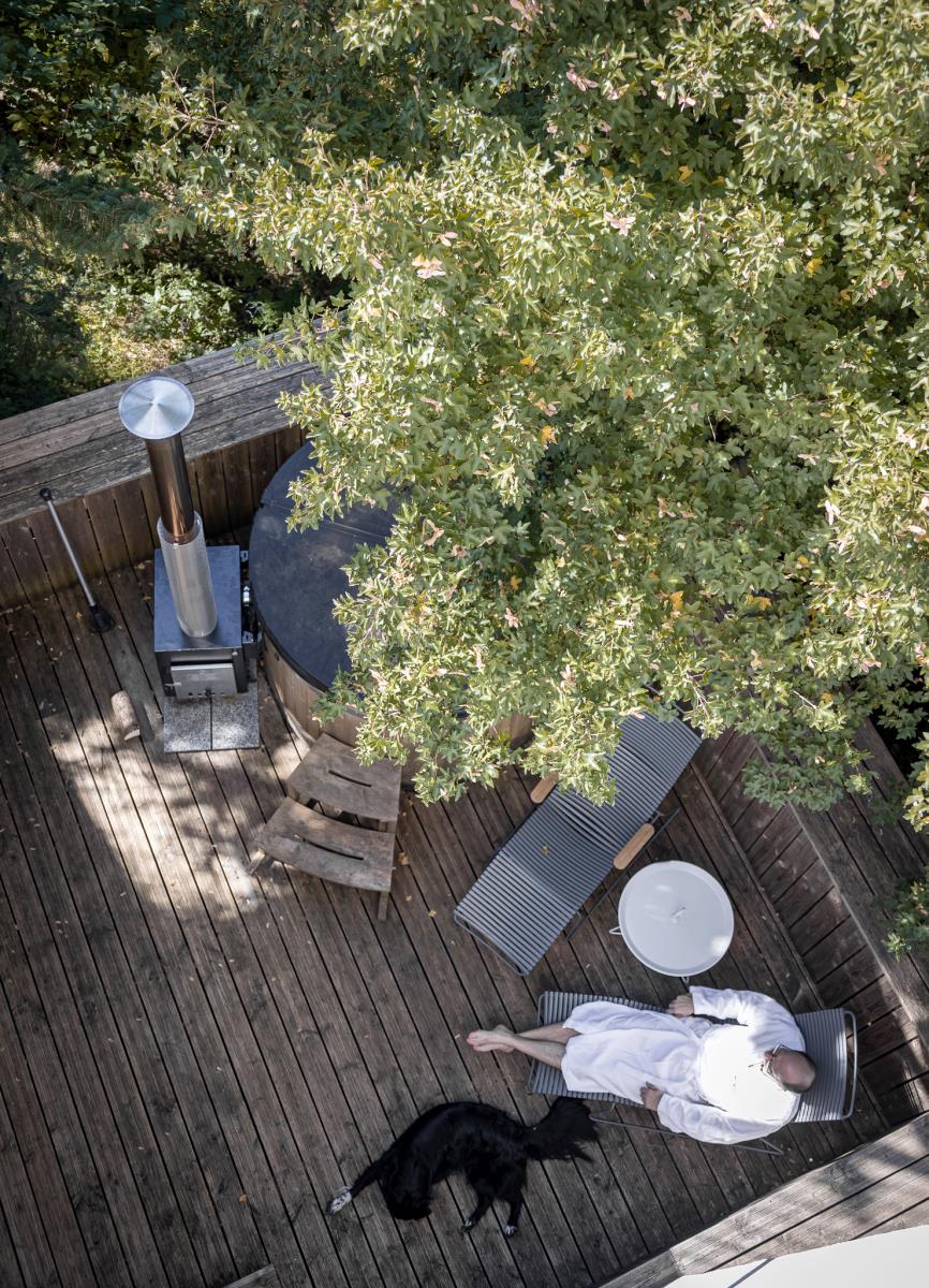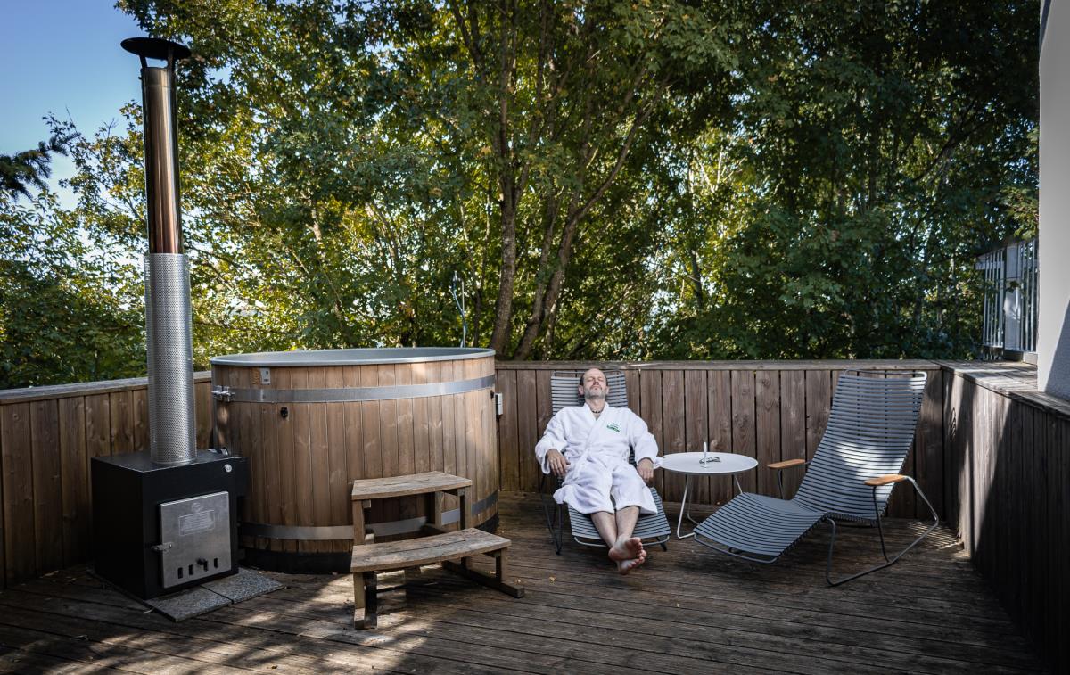 Genießen Sie Ihre Auszeit auf der sichtgeschützten Terrasse – hier wartet ein Hot Tub für unvergessliche Momente unter freiem Himmel.
