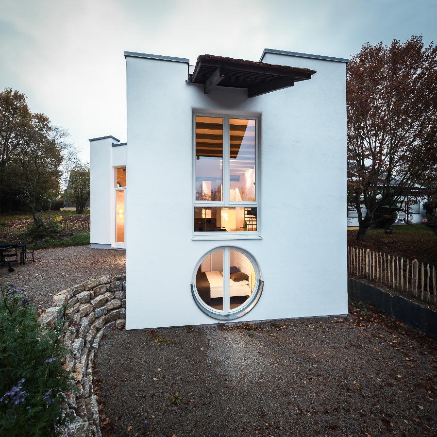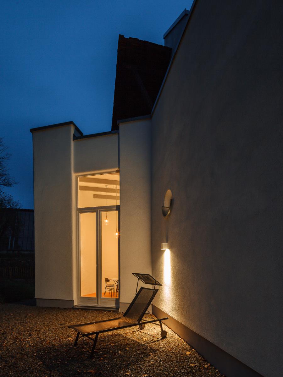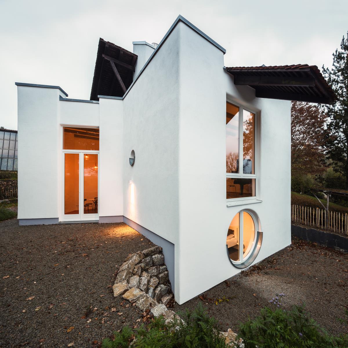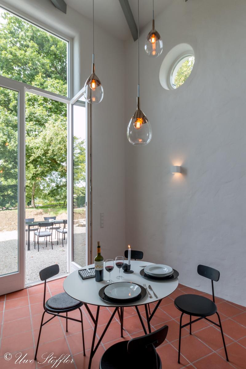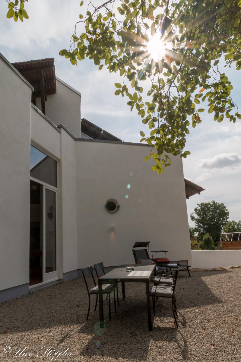 Freistehendes Ferienhaus Staege bau - im Bauhausstil - ein weiteres Highlight in Hohenlohe. Handwerkliche Perfektion trifft auf puristische Architektur und schafft im Einklang mit der Natur einen Ort der Erholung. Das Ferienhaus ist ein offener Raum zum Wohnen, Kochen, Essen und Musizieren