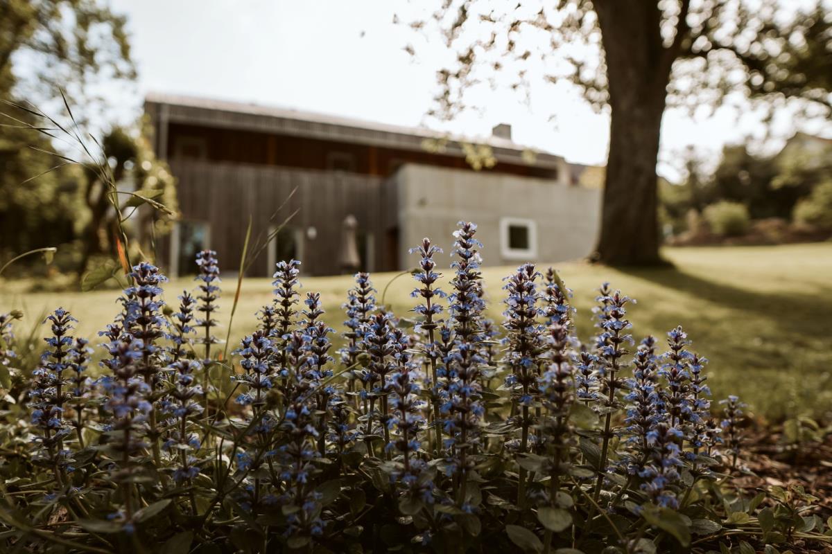 Das 1900m² große Grundstück ist komplett 1,4m hoch umzäunt und bietet viele Sitzecken für jeden Sonnenstand.
