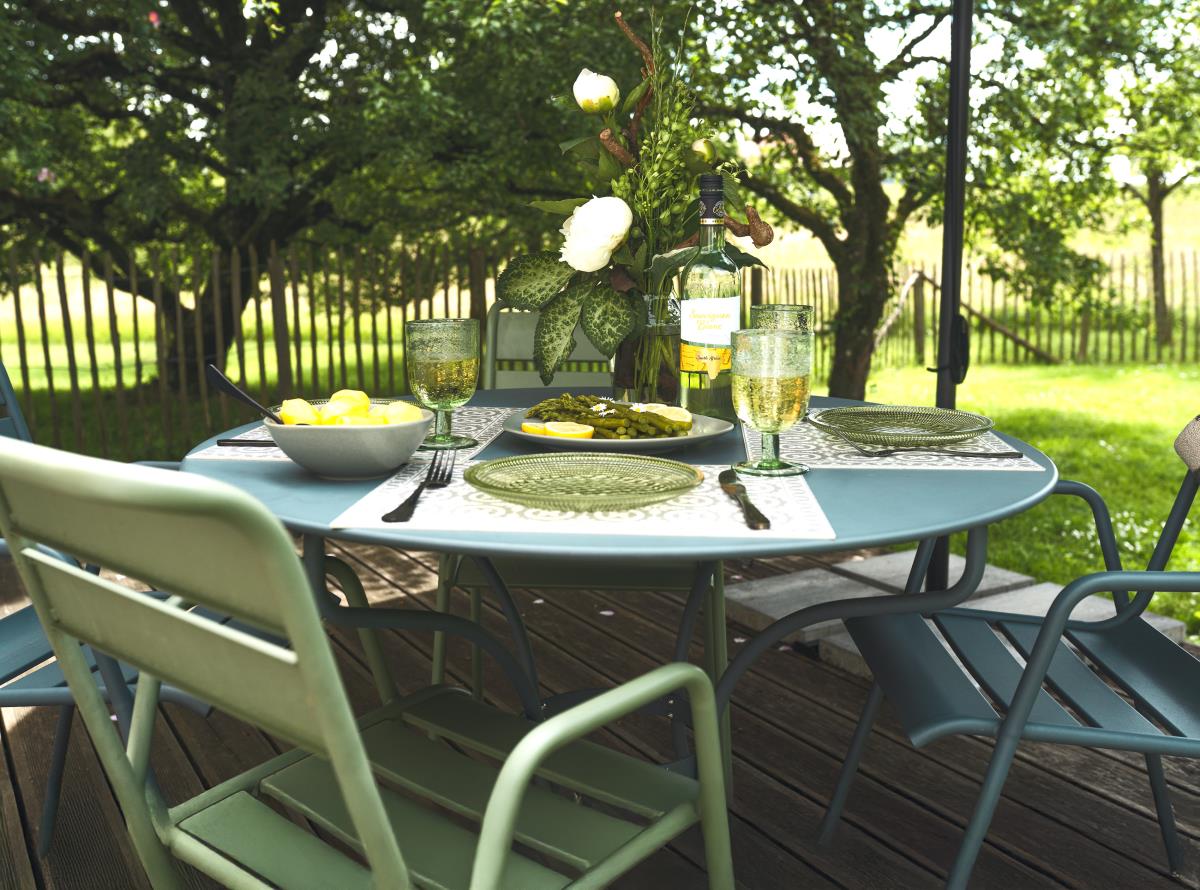 Sie beziehen die rechte Hälfte des Hauses, eingebettet in Natur pur. Innen schaffen sanfte Grün- und Grautöne eine harmonische Stimmung. Alles ist ebenerdig und auf entspannte Gemütlichkeit ausgerichtet.