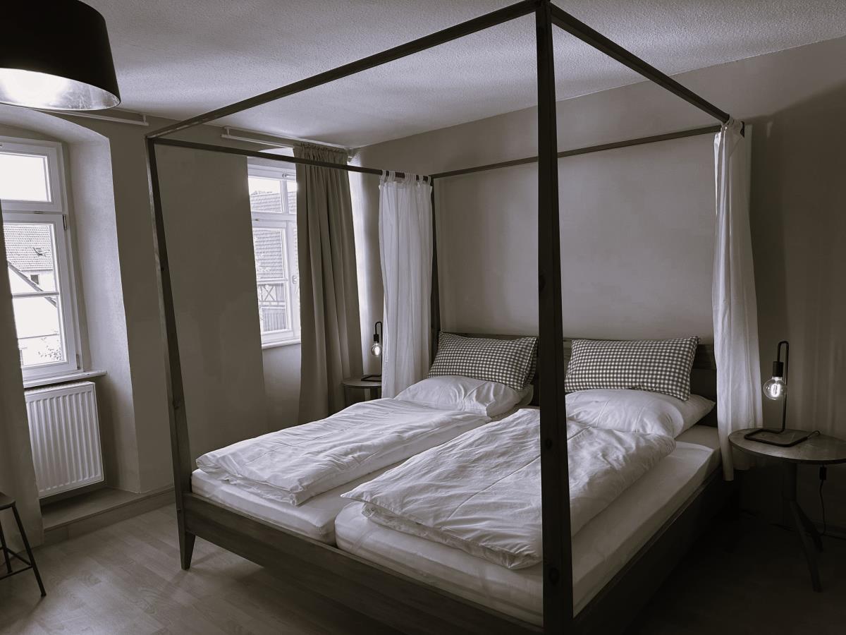 Aschenputtelgleich wurden Amtsstuben in ein originelles Nachtquartier verwandelt, so im Alten Rathaus, in Herrentierbach . Auf 120 m² finden hier bis zu fünf Personen gemütliche Schlafplätze. Kein Amtsschimmel galoppiert mehr wiehernd durch die Gänge, sondern hier lässt sich herrlich Ruhe für ausführliche Lektüren finden“. (Kira, Kulturtourismus in der
