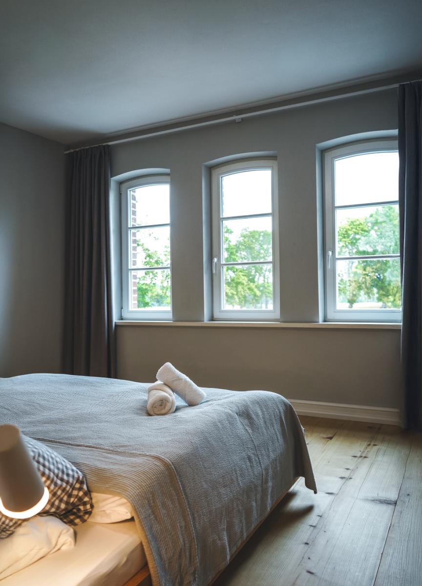 Auf rund 400 m² Wohnfläche bietet der Forsthof Platz für bis zu 10 Gäste und 3 Hunde. Jedes der sechs Schlafzimmer ist ein Refugium mit eigenem, elegantem Bad en suite – Hotelkomfort in privater Atmosphäre.