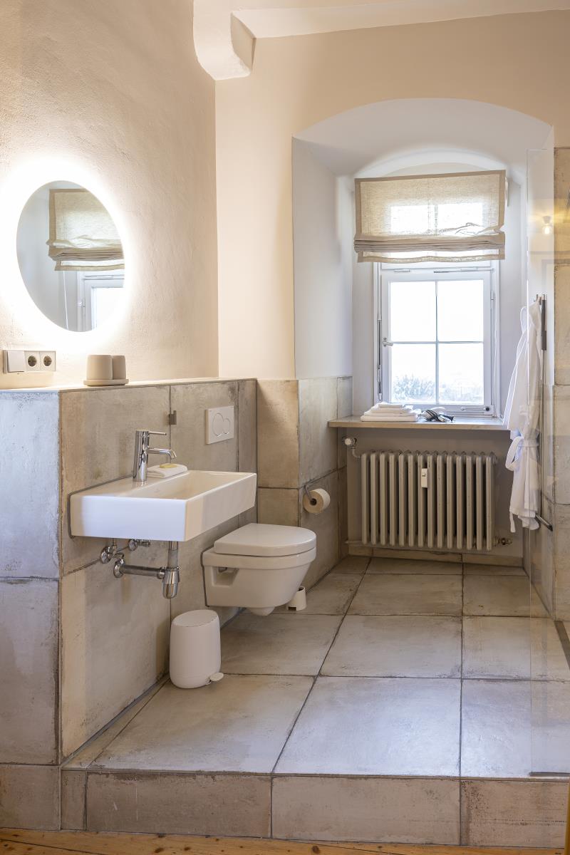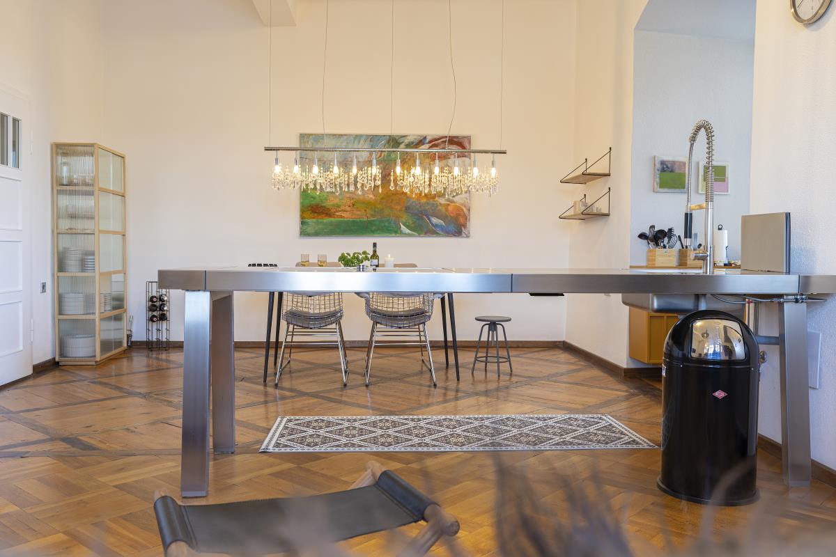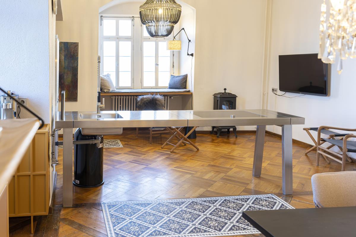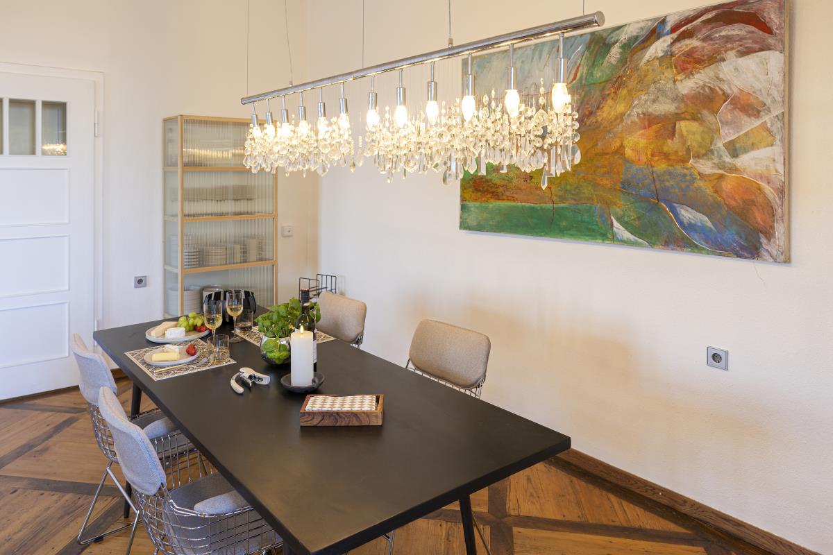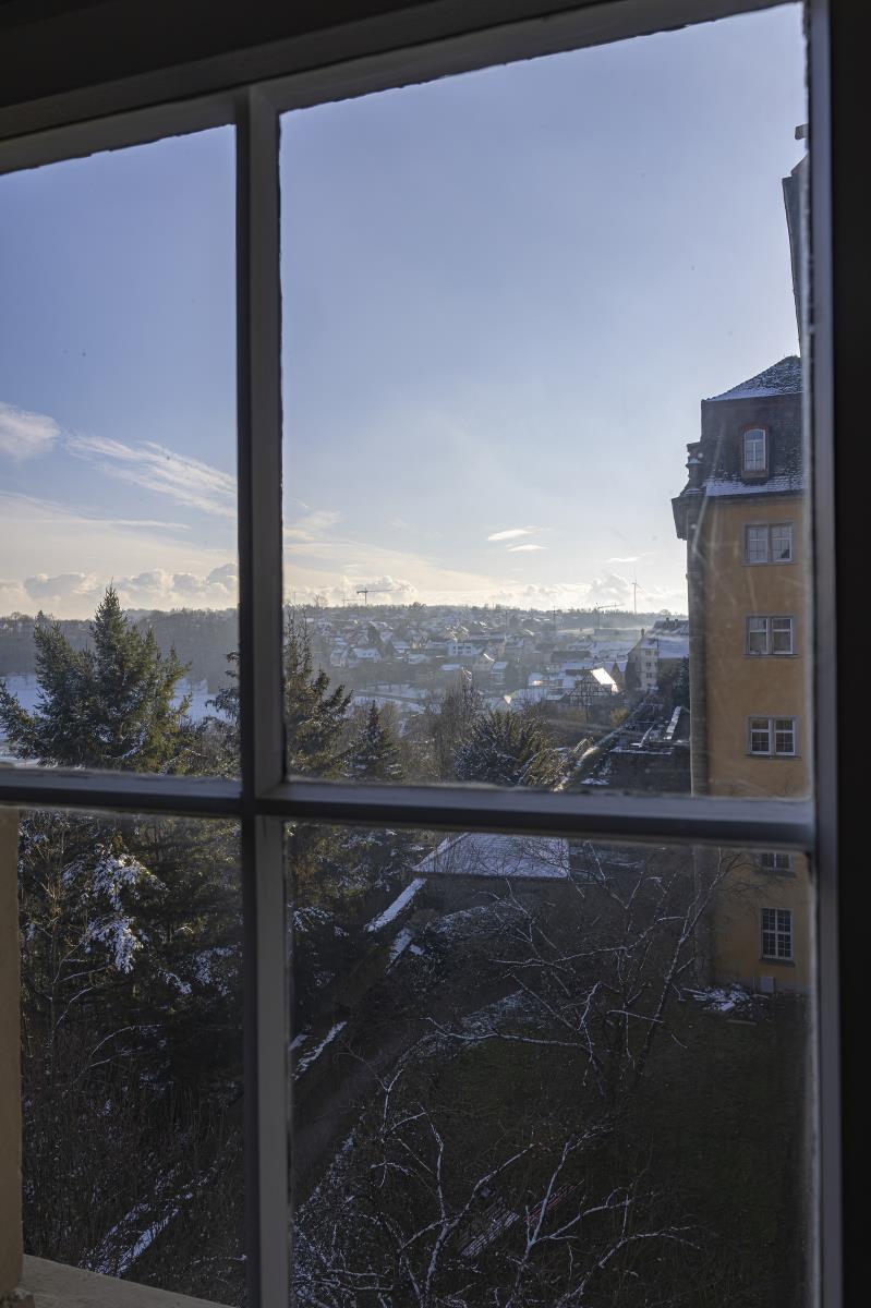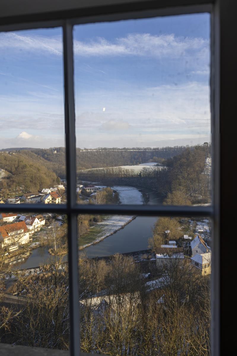 Eine weitere Perle in Hohenlohe - das Schlossquartier Kirchberg freut sich auf Gäste, die stylisch, minimalistisch im Spiel der Gegensätze zu den alten Mauern Urlauben möchten. Es wartet auf sie ein Bulthaup Küchenblock mit Gaggenau Kochfeld, freistehende Badewanne im Schlafzimmer, ein elektrischer Kamin, besonderes Interieur, ein Sitzplatz im Freien mit Blick ins Tal. Auf einem Felssporn hoch über der Jagst gelegen, unique, blickt der Turm als ältestes Bauwerk von Kirchberg auf eine bewegte Geschichte. Der Schlossturm besticht mit spektakulären Ausblicken ins Jagsttal und behaglichen Innenräumen, ist geprägt von historischem Parkett und Stuck, gelegen hinter dicken Schlossmauern. Hinter alten Mauern alle Annehmlichkeiten der Gegenwart genießen, einschließlich einem Wohnungszugang der bequem mit einem Fahrstuhl zu erreichen ist. Im Hof gibt es einen schönen Sitzplatz.. Das Schlossquartier Kirchberg freut sich auf vier Personen und max. zwei Vierbeiner