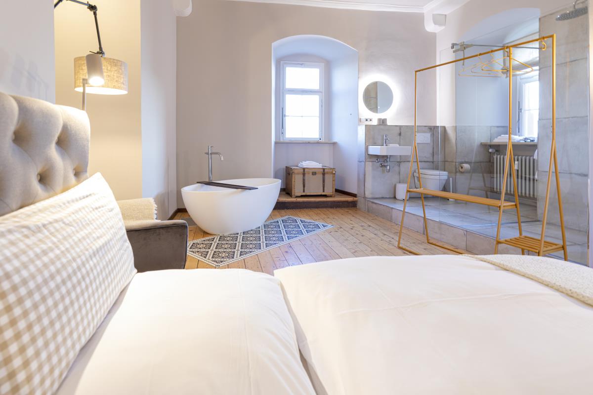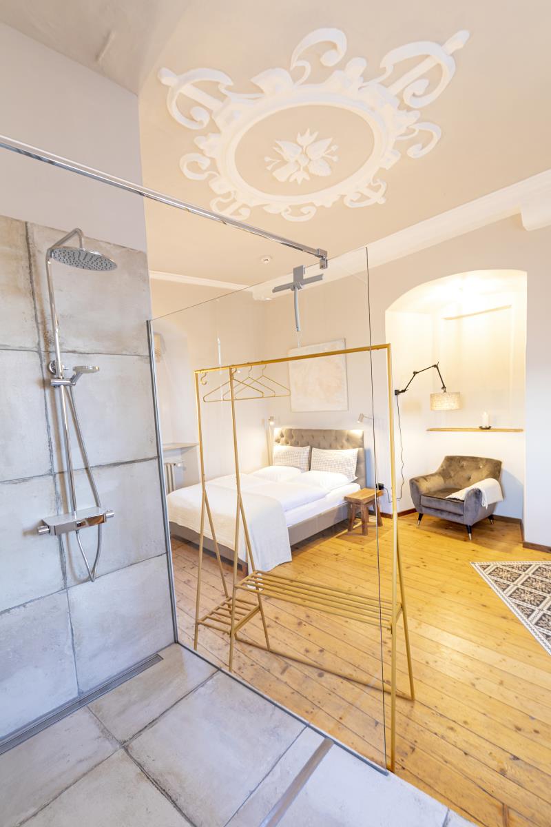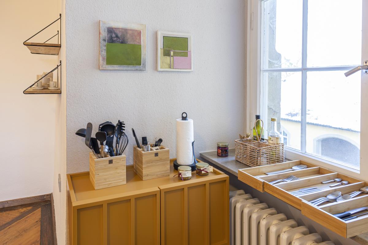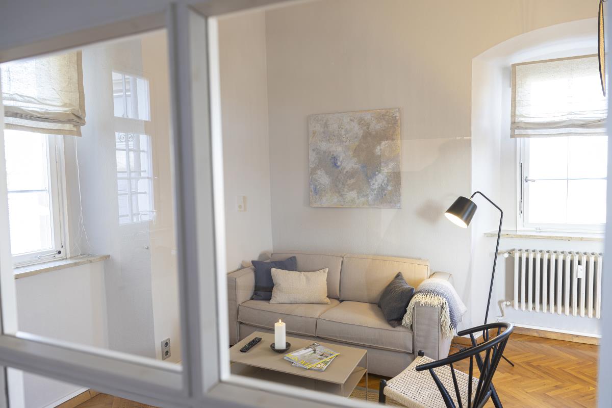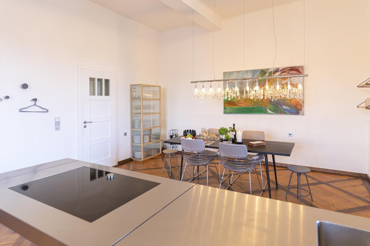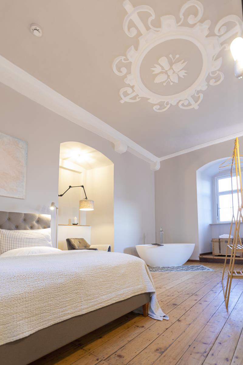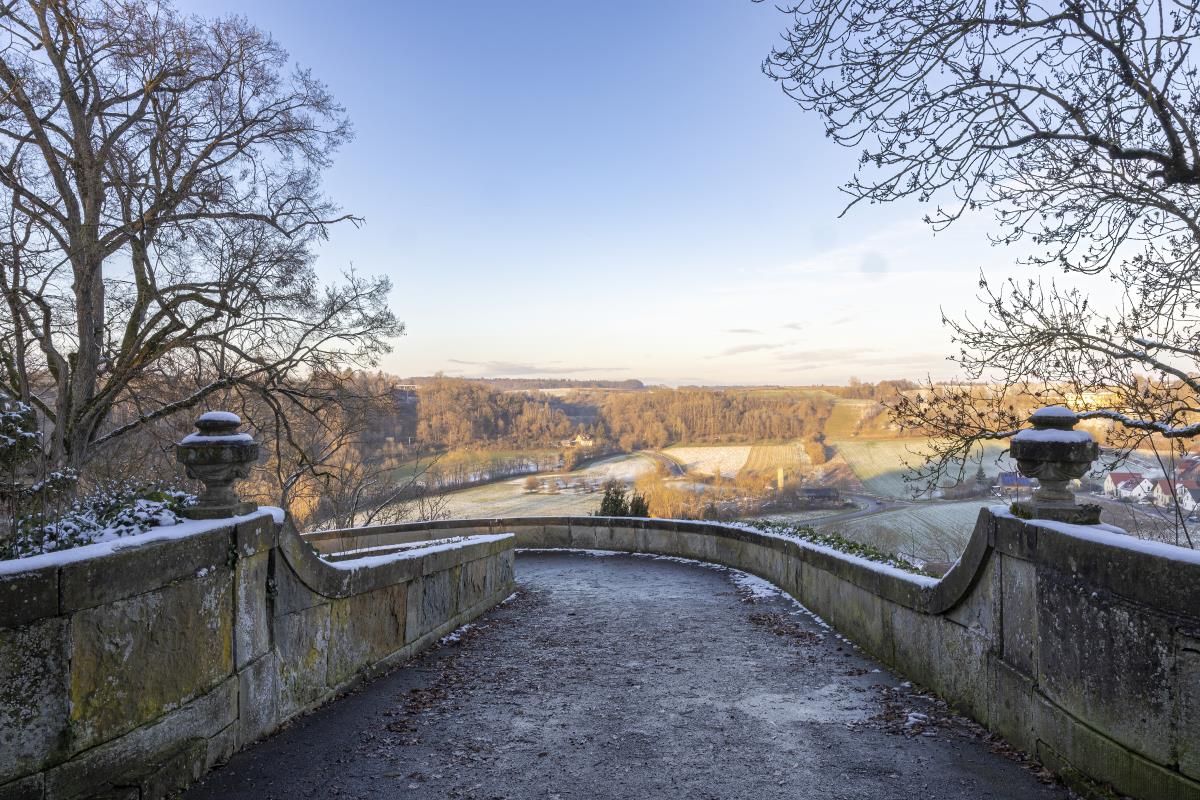 Eine weitere Perle in Hohenlohe - das Schlossquartier Kirchberg freut sich auf Gäste, die stylisch, minimalistisch im Spiel der Gegensätze zu den alten Mauern Urlauben möchten. Es wartet auf sie ein Bulthaup Küchenblock mit Gaggenau Kochfeld, freistehende Badewanne im Schlafzimmer, ein elektrischer Kamin, besonderes Interieur, ein Sitzplatz im Freien mit Blick ins Tal. Auf einem Felssporn hoch über der Jagst gelegen, unique, blickt der Turm als ältestes Bauwerk von Kirchberg auf eine bewegte Geschichte. Der Schlossturm besticht mit spektakulären Ausblicken ins Jagsttal und behaglichen Innenräumen, ist geprägt von historischem Parkett und Stuck, gelegen hinter dicken Schlossmauern. Hinter alten Mauern alle Annehmlichkeiten der Gegenwart genießen, einschließlich einem Wohnungszugang der bequem mit einem Fahrstuhl zu erreichen ist. Im Hof gibt es einen schönen Sitzplatz.. Das Schlossquartier Kirchberg freut sich auf vier Personen und max. zwei Vierbeiner